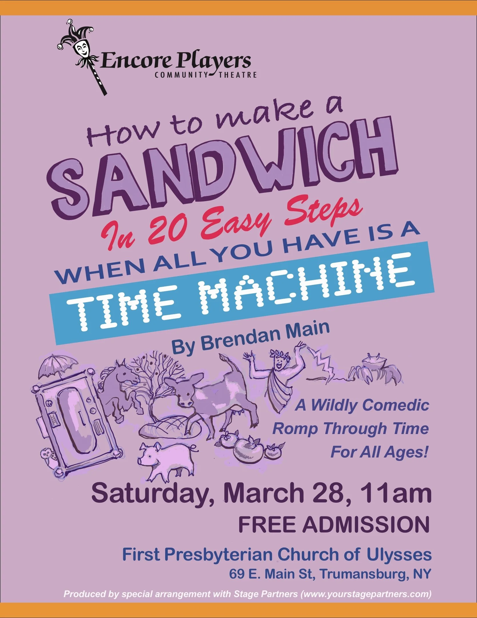 Encore proudly presents its community performance of How To Make a Sandwich in 20 Easy Steps When All You Have Is a Time Machine. We have prepared this fun all-ages show to bring to local schools, and are sharing it with the community as well. Admission is free; donations will be accepted.